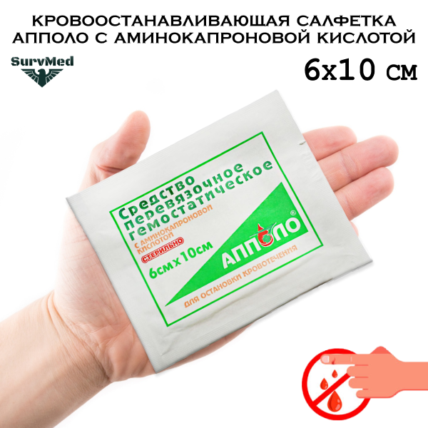 Кровоостанавливающая салфетка Апполо - это сухая перевязочная салфетка, пропитанная раствором аминокапроновой кислоты.