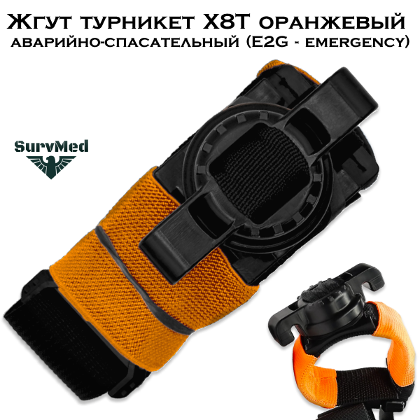 Жгут турникет X8T оранжевый аварийно-спасательный (E2G - emergency) - это кровоостанавливающий турникет на трещоточном механизме, предотвращающий произвольное раскручивание воротка.