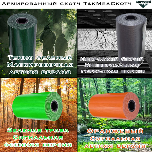Темно-зеленая версия ТакмедСкотча сделана специально для военного применения. Благодаря темному маскировочному цвету она позволяет слиться с местностью и не привлекать лишнего внимания.
