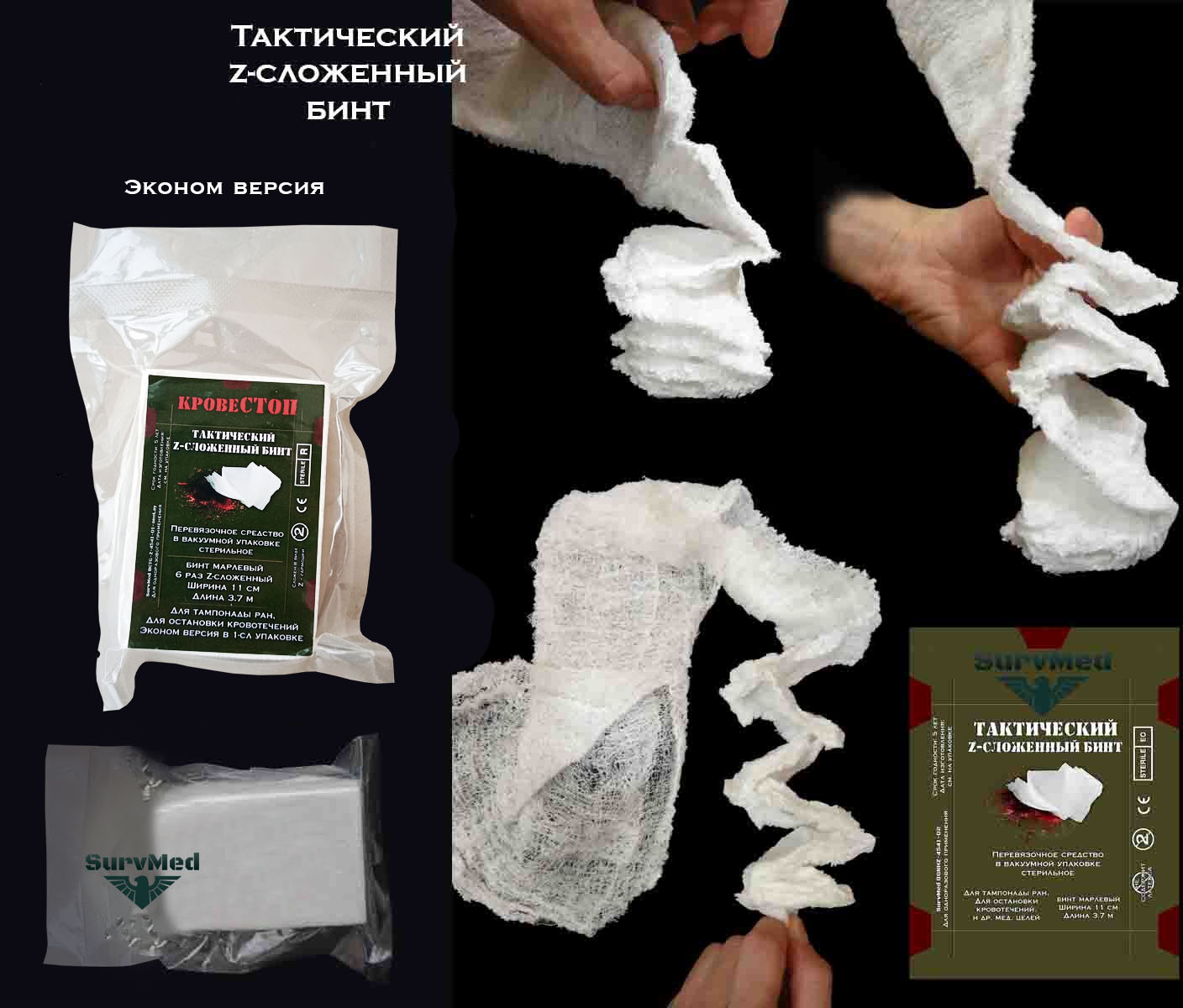 Тактический z-сложенный бинт - это специальное перевязочное средство, разработанное по военным стандартам для применения в боевой обстановке.