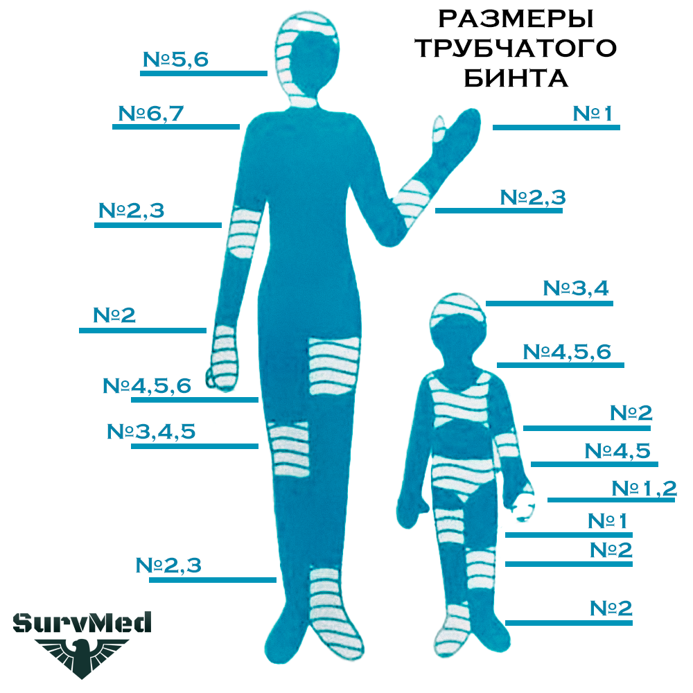 Разные размеры позволяют использовать трубчатый  бинт на разных частях тела.