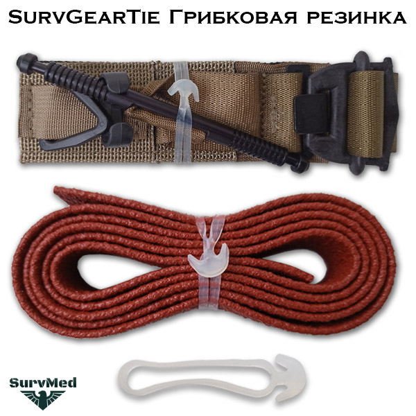Грибковые резинки SurvGearTie предназначены для фиксации экипировки и мелких предметов. С их помощью можно прикрепить предмет к ячейкам MOLLE, улучшить внутреннюю организацию подсумков или рюкзаков, навесить дополнительные средства на лямки рюкзака, разгрузки или пояса.