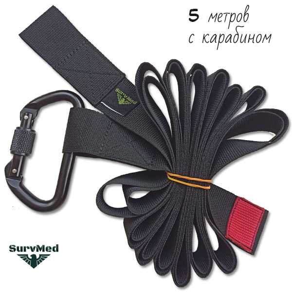 Эвакуационная стропа СурвМед Базовая SM-b4x5 черная - это самая простая и доступная стропа для эвакуации пострадавших из красной зоны или опасных мест. 5 метров.