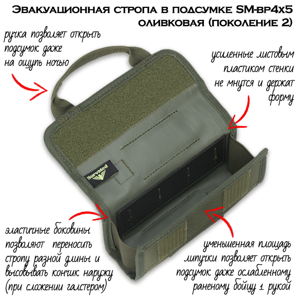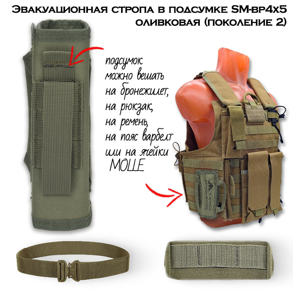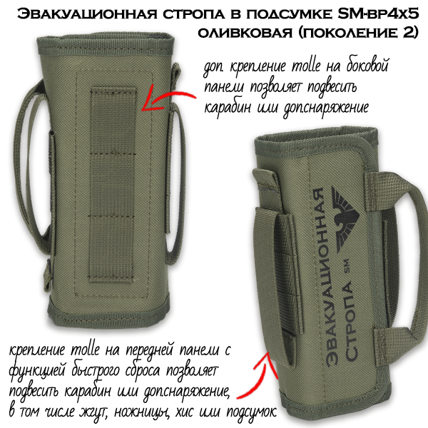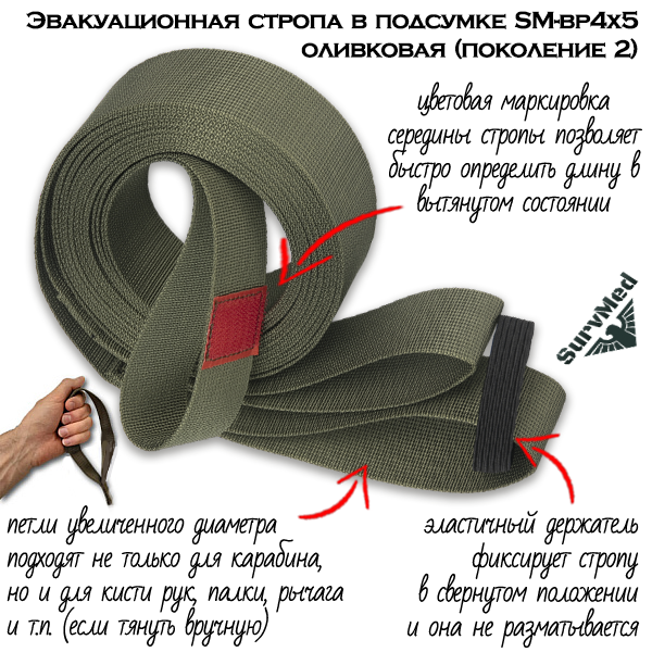 Эвакуационная стропа СурвМед SM-b4x5 оливковая в подсумке Поколение 2 - это стропа с чехлом для переноски для эвакуации пострадавших из красной зоны или опасных мест. 5 метров.