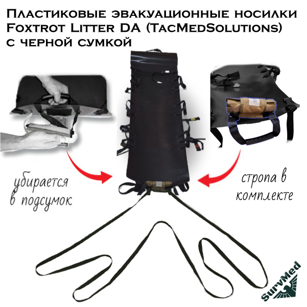 Пластиковые эвакуационные носилки Foxtrot Litter DA (TacMedSolutions) с черной сумкой