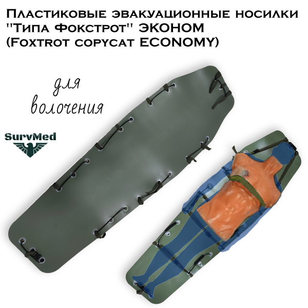 Пластиковые эвакуационные носилки "Типа Фокстрот" ЭКОНОМ (Foxtrot copycat ECONOMY) - это носилки из листового пластика для эвакуации пострадавших путем волочения. Эконом версия без чехла.