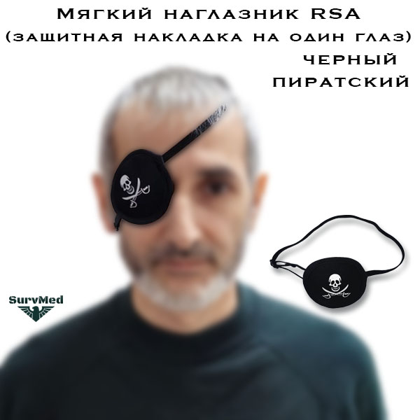 Мягкий наглазник RSA пиратский - это защитная накладка на один глаз на эластичном шнуре для проникающих ранений глаз с веселым роджером (череп с саблями).