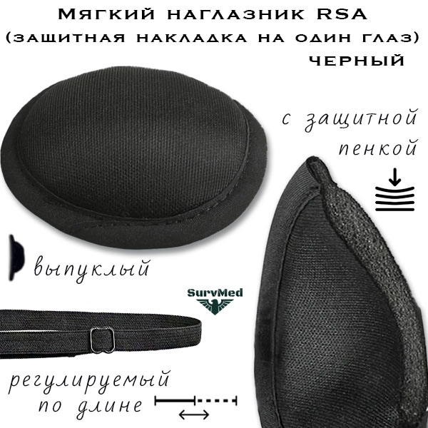 В отличии от жестких пластиковых щитков серии RSO, серия RSA выполнена из мягкой пенки в тканевом чехле и подходит для длительного ношения во время реабилитации. Неброский дизайн не привлекает лишнего внимания и подходит для гражданского городского использования во время выздоровления, либо в ситуациях, когда нужно ограничить доступ света к одному глазу.