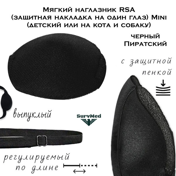 Мягкий наглазник RSA пиратский Mini (детский или на кота и собаку) - это защитная накладка на один глаз на эластичном шнуре от и для проникающих ранений глаз.