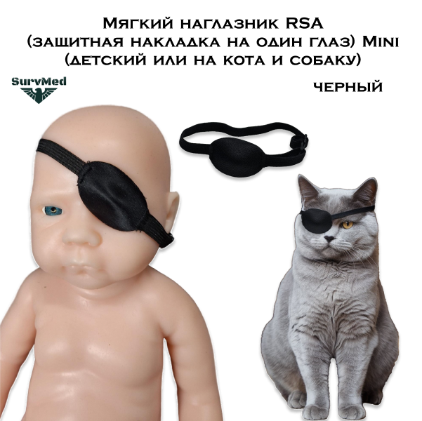 Мягкий наглазник RSA чёрный Mini (детский или на кота и собаку) - это защитная накладка на один глаз на эластичном шнуре от и для проникающих ранений глаз.
