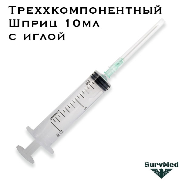 Шприц 10мл трехкомпонентный с иглой Паскаль Медикал (3-х комп.)