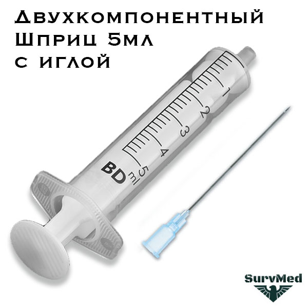 Шприц 5мл двукомпонентный с иглой BD Becton Dickinson - это инъекционный