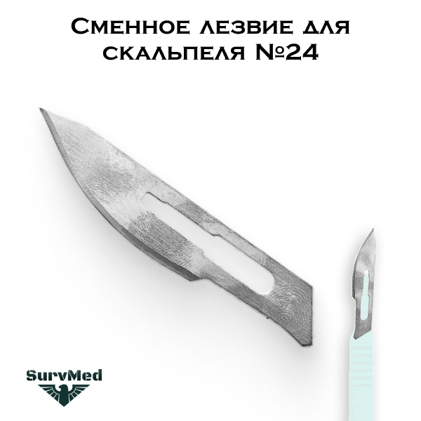 Сменное лезвие для скальпеля №24 - это лезвие для установки на рукоять скальпеля для хирургических надрезов.