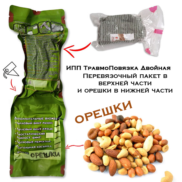 Версия с Орешками также подойдет для использования в качестве демонстрационного материала. С ее помощью можно показать, что современные перевязочные пакеты шагнули далеко вперед и могут комплектоваться в буквальном смысле чем угодно - хоть гемостатическими (МГС) средствами, хоть орешками. И вот вам...версия с ними.