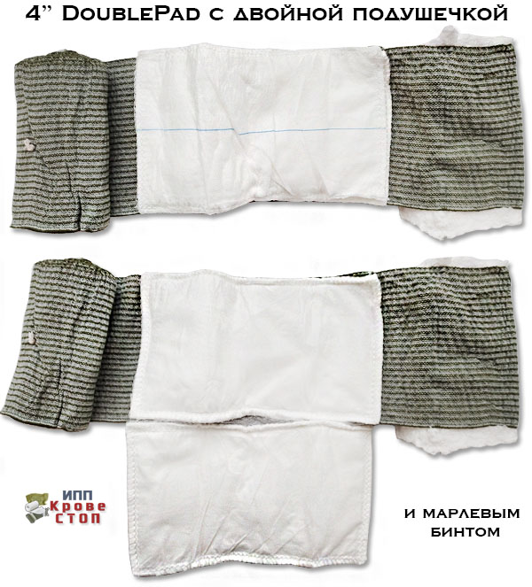 Подушечка с большими сорбционными (впитывающими) свойствами позволяет применять индивидуальный перевязочный медицинский пакет КровеСтоп ТравмоПовязку даже в самых серьезных и тяжелых ранениях из военной сферы - например огнестрел или МВТ (минно-взрывные травмы).