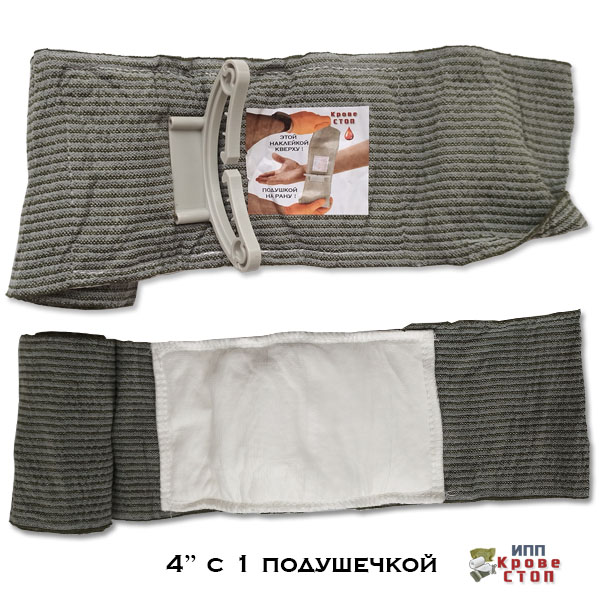 Индивидуальный перевязочный пакет КровеСтоп ТравмоПовязка 4" – это специальный эластичный бандаж, сочетающий в себе функции ИПП, давящей повязки и альтернативы жгута. Благодаря специальному элементу-пряжке, травмоповязка позволяет создать дозированную компрессию на рану и остановить даже самое сильное кровотечение.