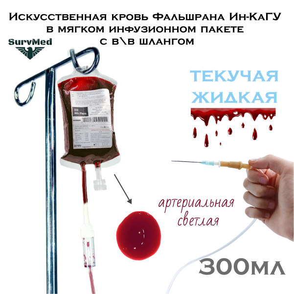 Искусственная кровь Фальшрана Нх-М 500мл - это эконом имитация красной крови в мягком инфузионном пакете 0.5 литра.