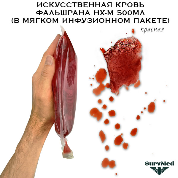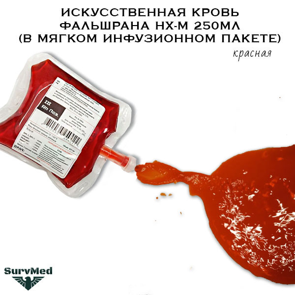 Искусственная кровь Фальшрана Нх-М 500мл - это эконом имитация красной крови в мягком инфузионном пакете 0.25 литра.