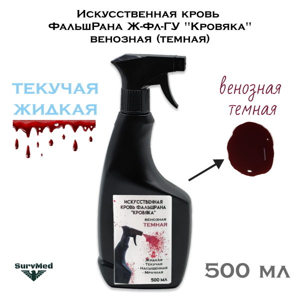 Искусственная кровь ФальшРана Ж-Фл "Кровяка" венозная (темная) ГУСТАЯ (флакон с дозатором 750 мл) - это готовая к применению жидкая искусственная кровь для тренировок и киноэффектов