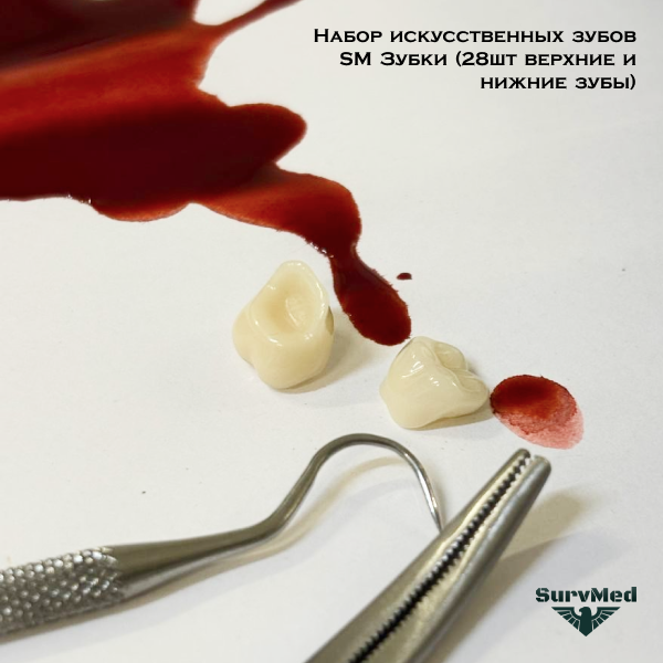 Набор искусственных зубов SM Зубки - это полный набор из 28 шт разных верхних и нижних зубов (комплект на обе челюсти).