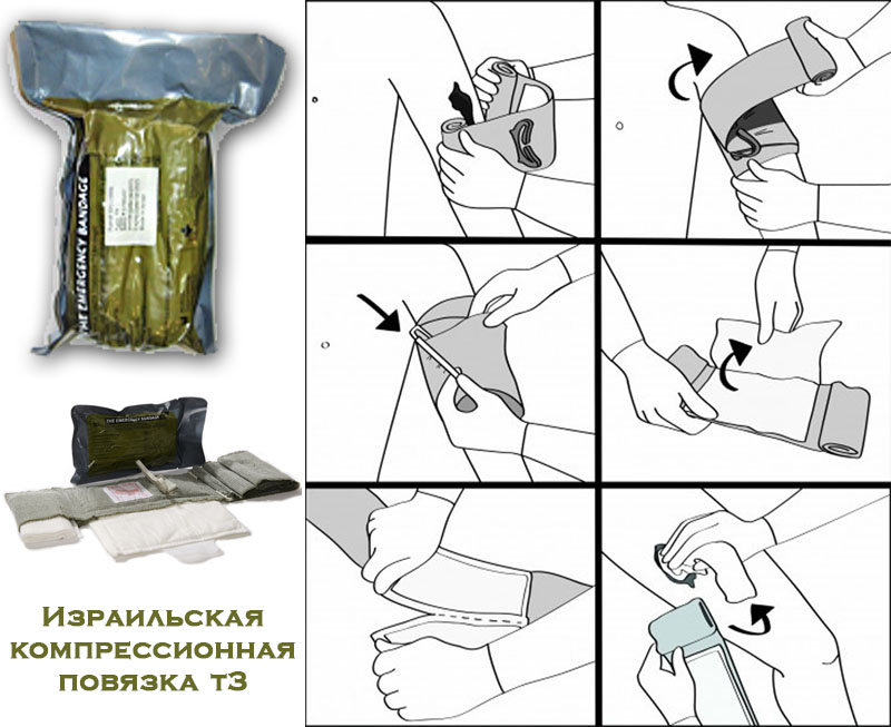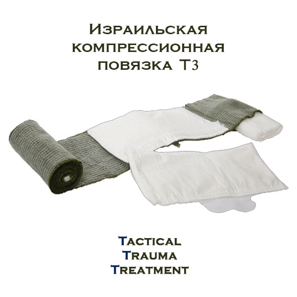 Израильская компрессионная повязка T3 - это специальный компрессионный бандаж для перевязки ран с обильным кровотечением. От обычной повязки 4" отличается раскладной подушечкой и доп.бинтом.