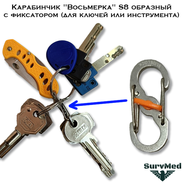 Карабинчик "Восьмерка" S8 образный - это мини карабин с фиксатором для связки ключей или инструмента.