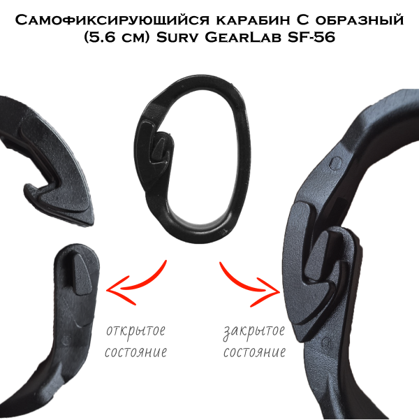 Самофиксирующийся карабин Surv GearLab SF-56 - это С образный карабинчик небольшого размера (~5.6 см) для крепления мелочевки.