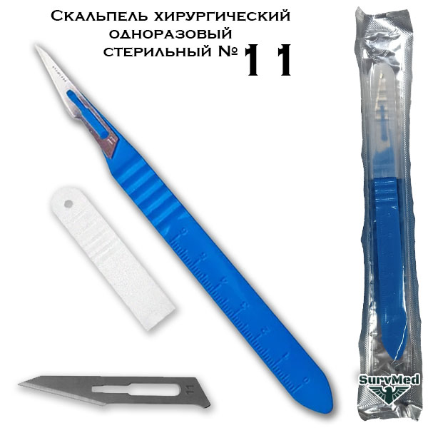 Скальпель медицинский стерильный пластиковый размер 11 - это стандартный скальпель на длинной ручке для хирургических надрезов