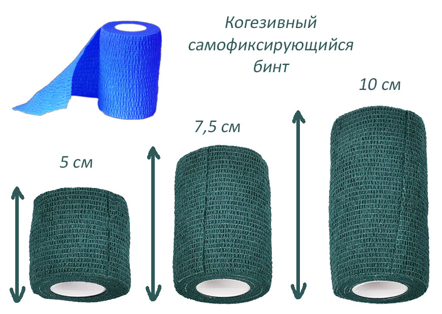 Когезивный бинт не имеет клейкой основы наподобие скотча и не оставит следов "клея". Он хорошо тянется и позволяет зафиксировать даже самую большую и объемную повязку на теле пострадавшего.