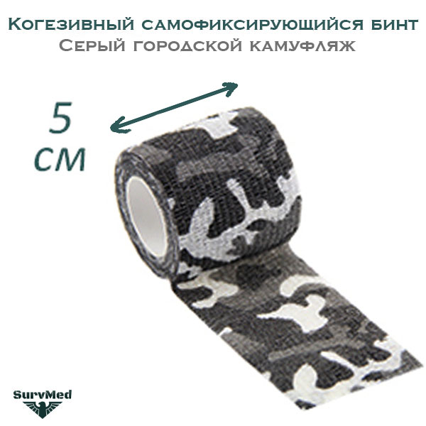 Когезивный бинт СурвМед лесной камуфляж 5 см - это универсальный самоклеющийся бинт для фиксации повязок и перевязочных материалов.