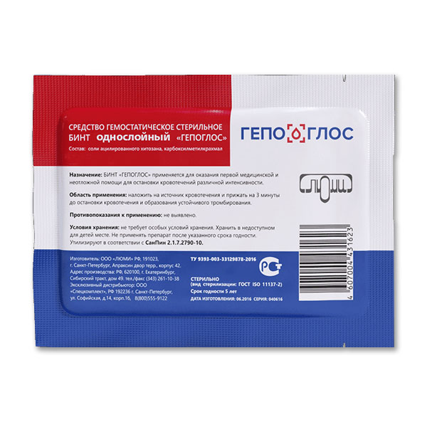 Кровоостанавливающее средство Гепоглос в форме бинта разработано специально для оказания первой медицинской и неотложной помощи в случае сильных ранений. За счет компактных размеров, бинт гепоглос влезает в любую индивидуальную аптечку или отделение рюкзака.