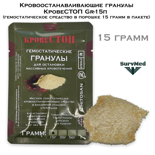 Кровоостанавливающие гранулы КровеСТОП Gr-15п (гемостатическое средство в порошке 15 грамм в пакете)
