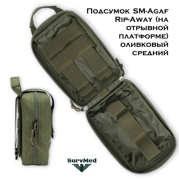 Подсумок SM-Agaf Rip-Away оливковый хаки - это подсумок среднего размера под аптечку и средства первой помощи. Благодаря отрывной платформе, он может крепиться как в вертикальном, так и горизонтальном положениях.
