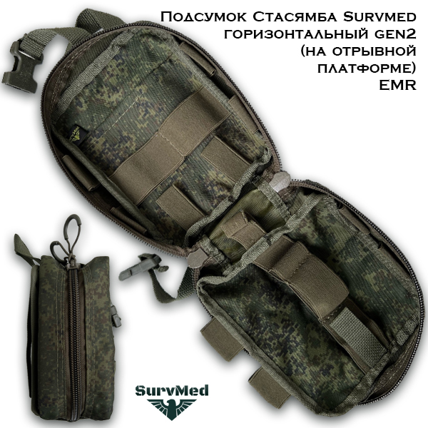 Подсумок Стасямба горизонтальный gen2 EMR (русский пиксель кмф) - это подсумок среднего размера под аптечку и средства первой помощи. Благодаря отрывной платформе, он может крепиться как в вертикальном, так и горизонтальном положениях.
