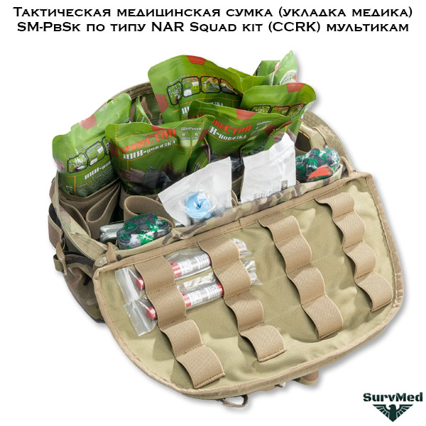 Тактическая медицинская сумка SM-PbSk - это укладка медика в виде поясной сумки под групповую аптечку по типу NAR Squad kit (CCRK) мультикам.