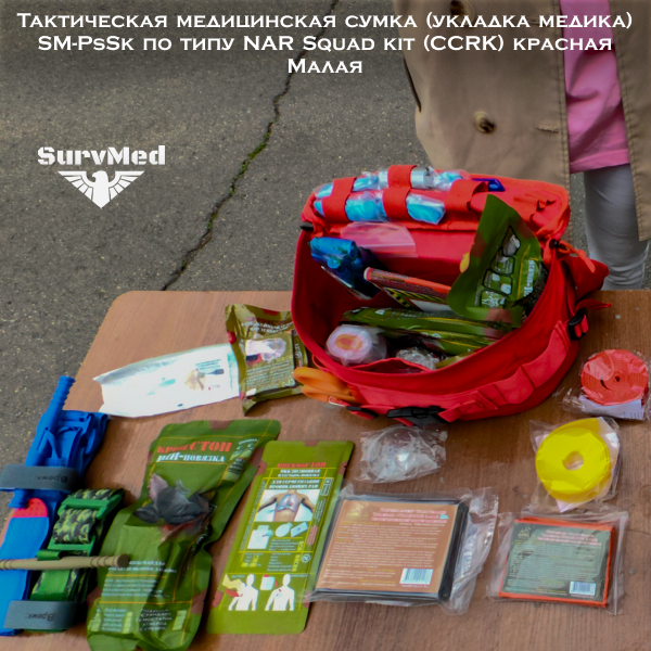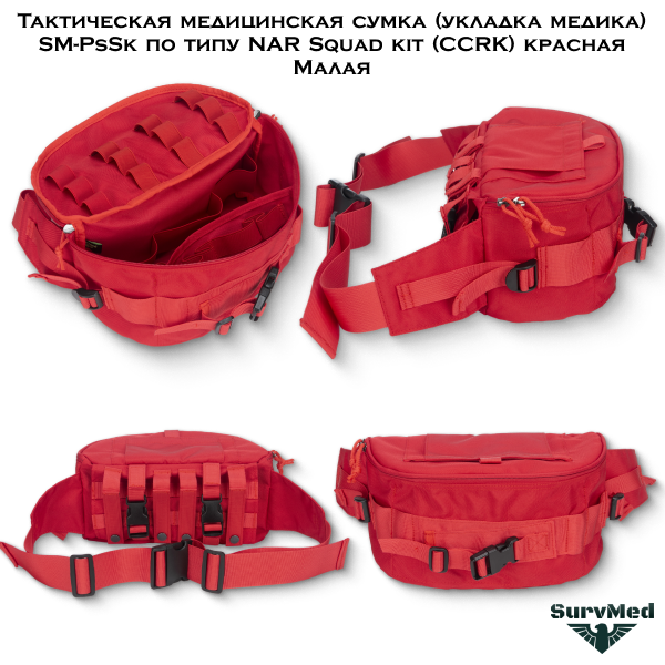 Тактическая медицинская сумка SM-PbSk Малая - это укладка медика в виде поясной сумки под групповую аптечку по типу NAR Squad kit (CCRK) красная сигнальная.