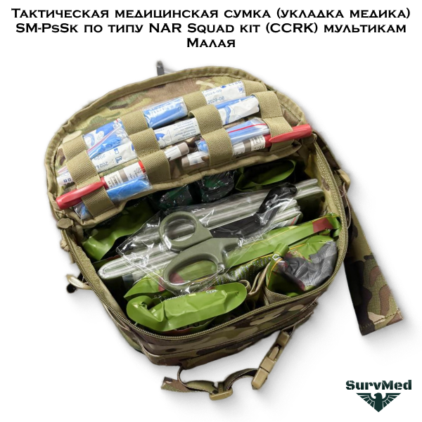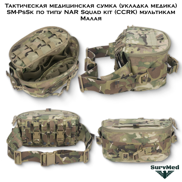 Тактическая медицинская сумка SM-PbSk Малая - это укладка медика в виде поясной сумки под групповую аптечку по типу NAR Squad kit (CCRK) камуфляж мультикам.