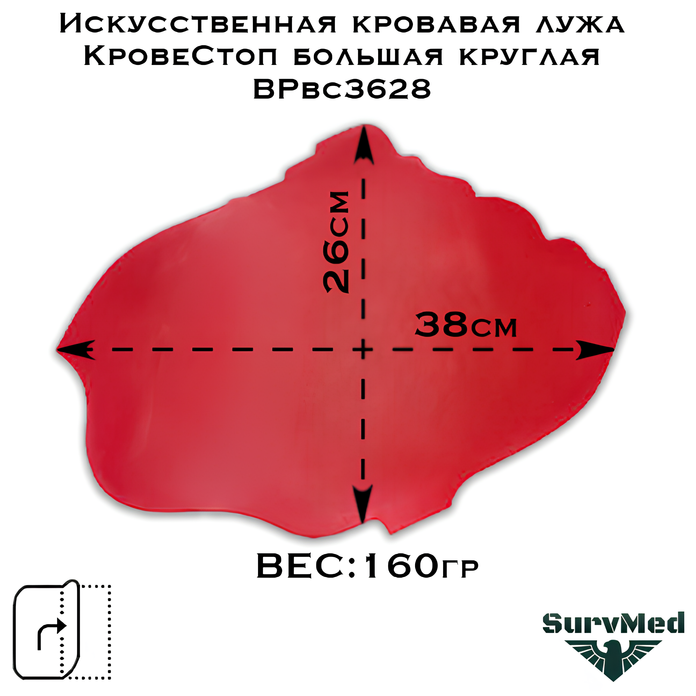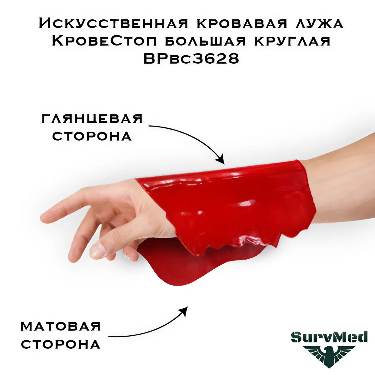 Искусственная кровавая лужа КровеСтоп BPвс3628 — это круглая большая мягкая кровавая накладка муляж для тренировок по первой помощи и запугивания друзей.