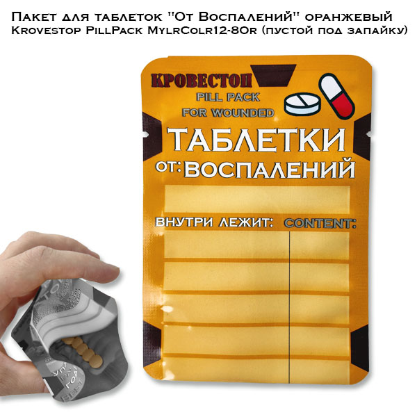Пакет для таблеток "От Воспалений" оранжевый Krovestop PillPack MylrColr12-8Or (пустой под запайку)