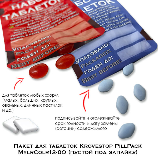 Пакеты для таблеток Krovestop PillPack MylrColr позволяют облегчить прием таблеток в экстренных ситуациях. Они отлично подходят для полевого использования: там, где есть много стрессовых факторов, снижающих уровень осознанности.
