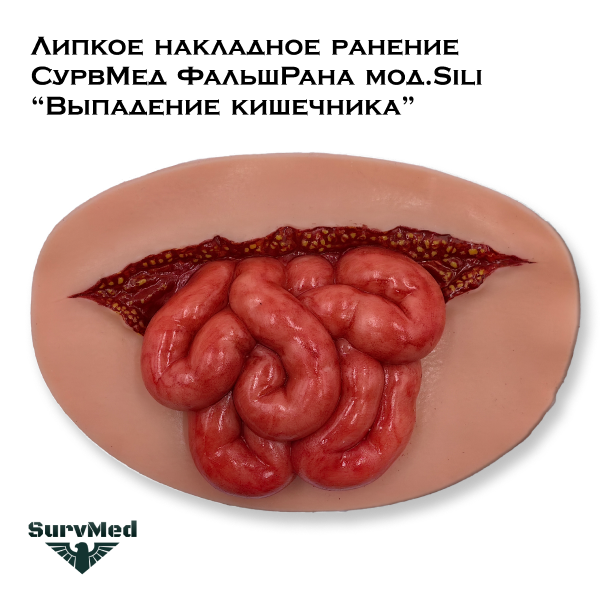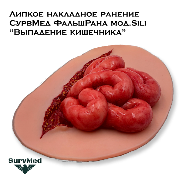 Липкое накладное ранение СурвМед ФальшРана мод.Sili “Выпадение кишечника” (много мелких кишок)