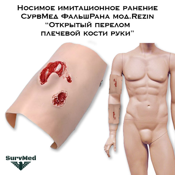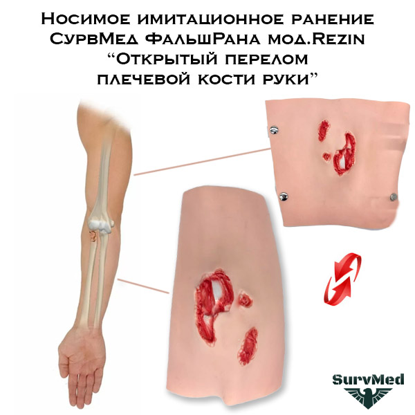 Носимое имитационное ранение СурвМед ФальшРана мод.Rezin “Открытый перелом плечевой кости руки”