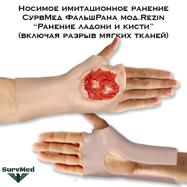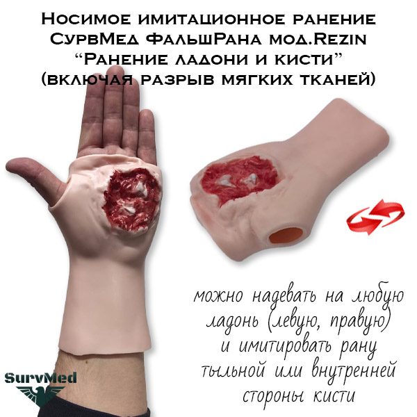 Носимое имитационное ранение СурвМед ФальшРана мод.Rezin “Ранение ладони и кисти” (включая разрыв мягких тканей)