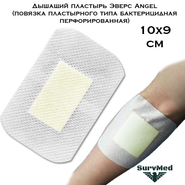 Дышащий пластырь Эверс Angel 10x9 см - это бактерицидная повязка пластырного типа перфорированная для закрытия небольших ран.