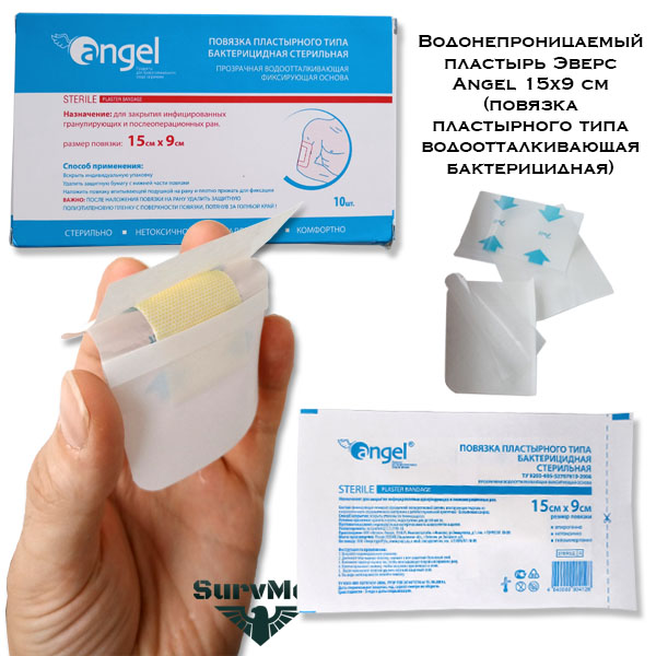 Водонепроницаемый пластырь Эверс Angel 15х9 см - это водоотталкивающая бактерицидная повязка пластырного типа для закрытия небольших ран.