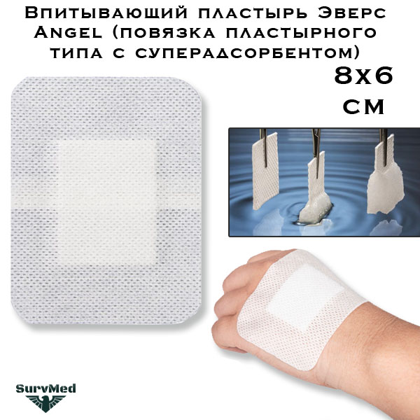 Впитывающий пластырь Эверс Angel 8х6 см - это повязка пластырного типа с суперадсорбентом для мокрых ран.