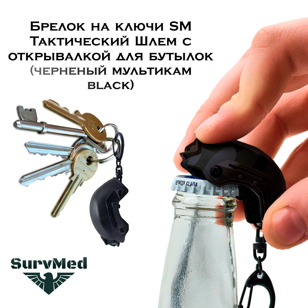 Брелок на ключи SM Тактический Шлем с открывалкой для бутылок (черненый мультикам black)
