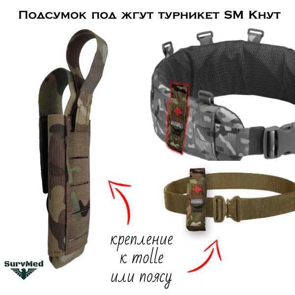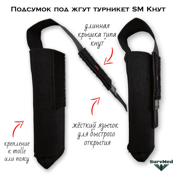 Подсумок SM типа Кнут закрытого типа предназначен для защиты кровоостанавливающего турникета или жгута от внешний воздействий - пыли, грязи, порезов, проколов, атмосферных осадков и воздействия ультрафиолета (выгорания на солнце).