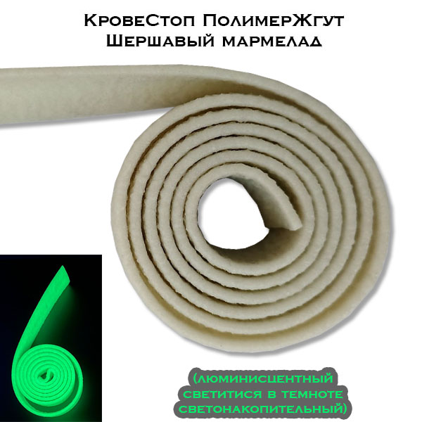 ПолимерЖгут ШершавыйМармелад не просто так был назван шершавым. В отличии от аналогов, имеющих гладкую поверхность, которая так легко скользит в потных руках или во время осадков (напр. брызги дождя), либо при контакте с кровью пострадавшего, Шершавый жгут имеет текстуру, похожую на полосы мармелада с сахарной посылкой.