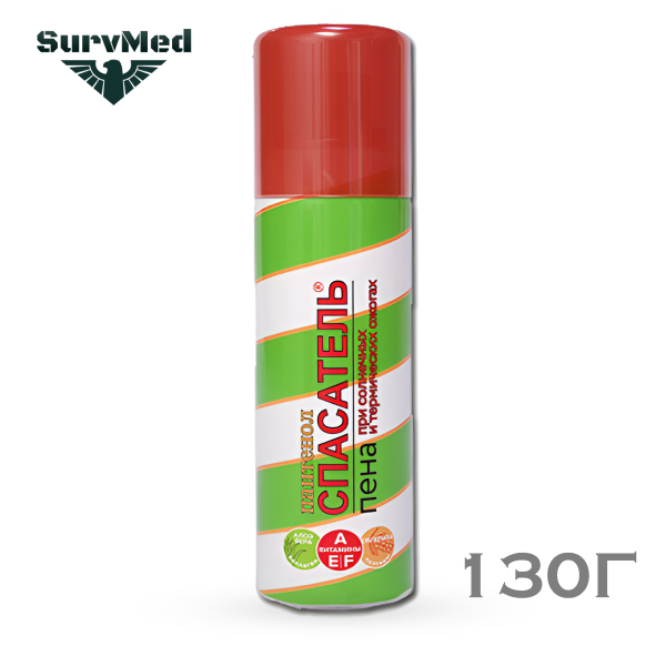 Спасатель Пена - это пенистый спрей-крем, который помогает лечить последствия ожогов (солнечных и термических) и обморожений. Он быстро облегчает симптомы и ускоряет заживление. Большой флакон 130г